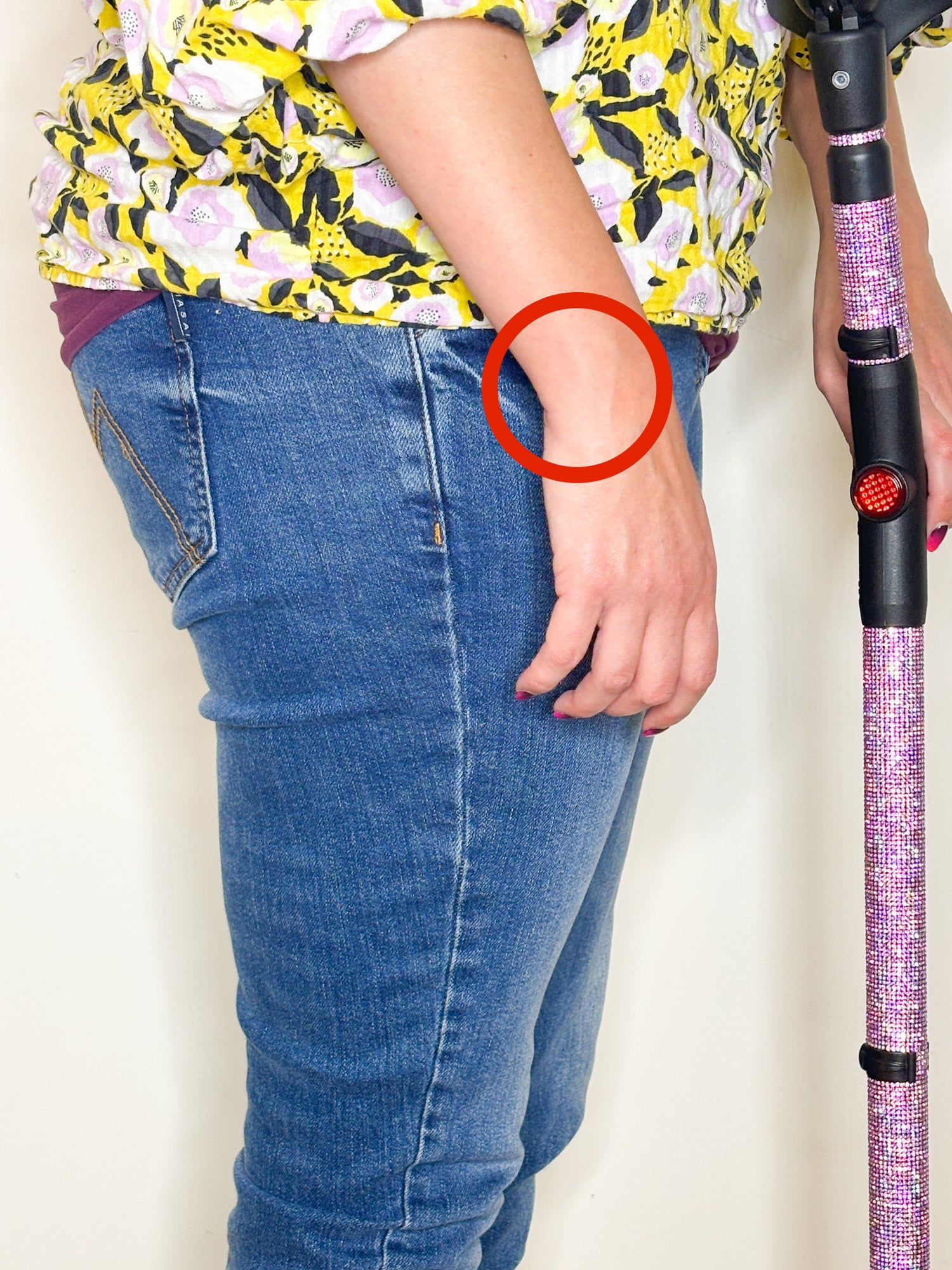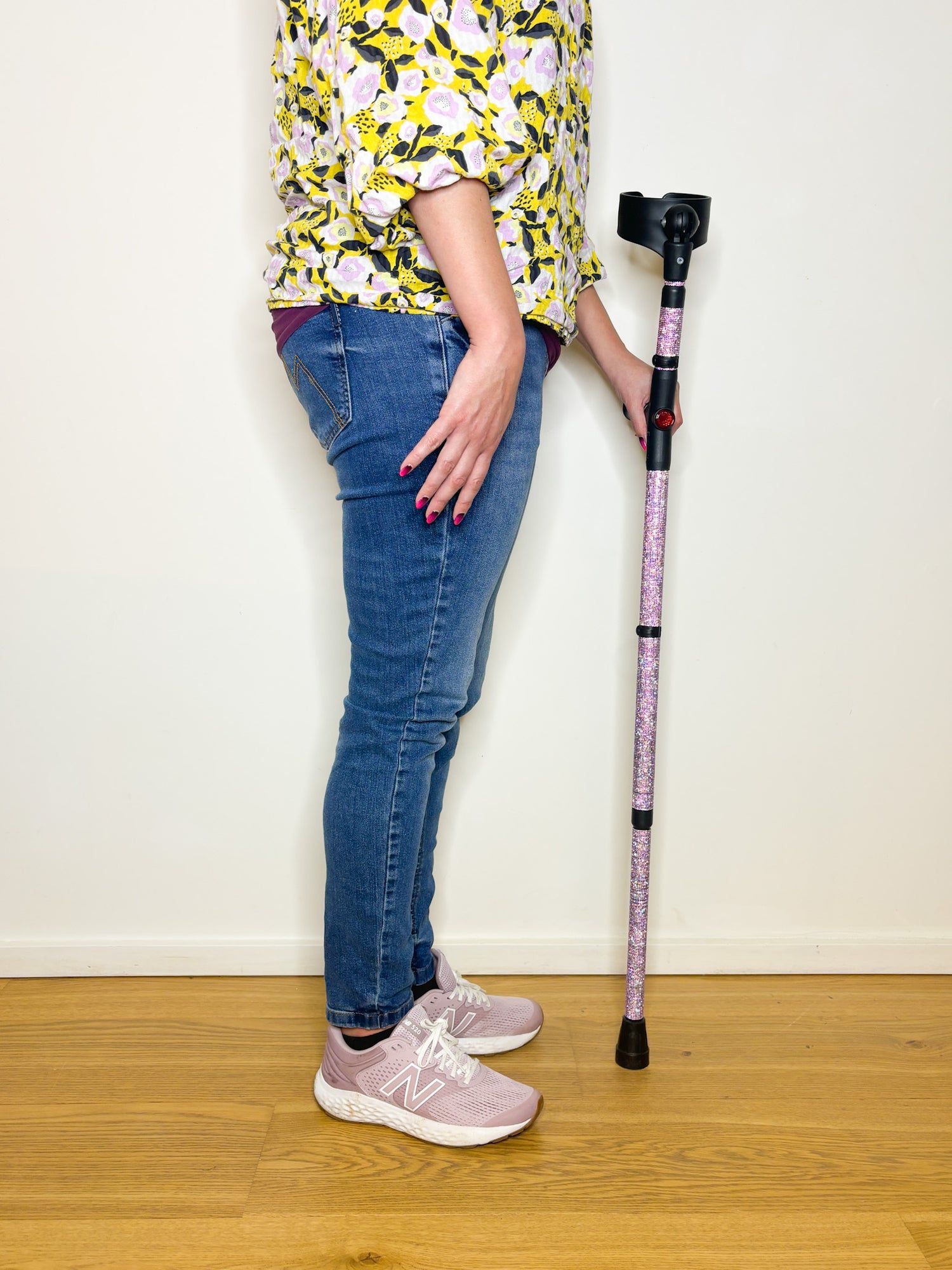 Important: If you are ordering your crutch for a particular event, please measure while you are wearing the shoes you intend to wear (or those of a similar height). If you are wearing heels or shoes with chunky soles, this will affect the height of your crutch.