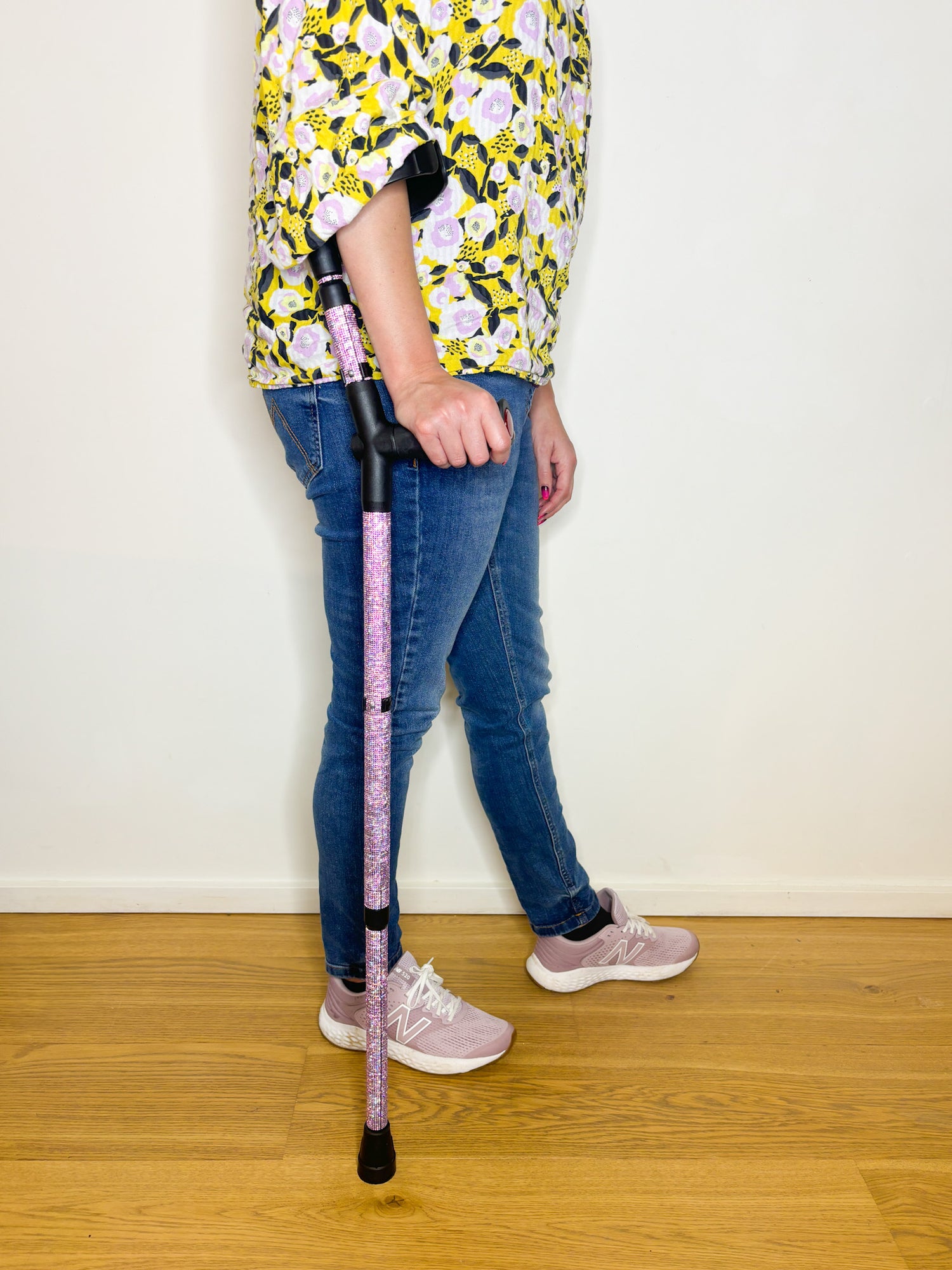 The best method is to measure from your current crutch or walking stick handle to the end of the stick and choose the closest option to this. Please note, if you have a crutch, measure from the corner where the handle meets the stick. Our crutches have a comfort grip handle which is slightly wider and more angled than standard crutches, so measuring from the corner will give you your closest size comparison.